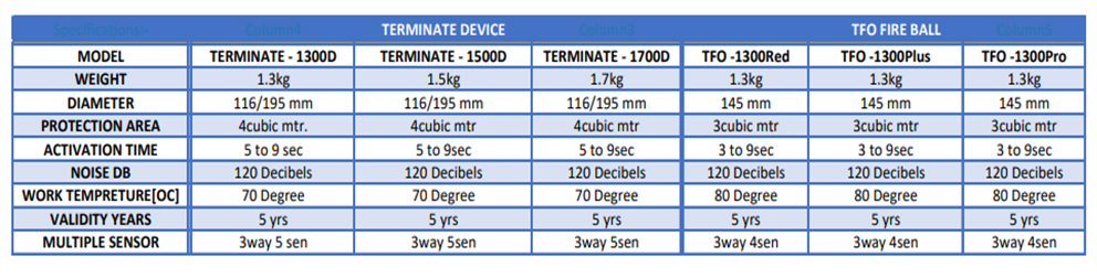 When a fire occurs in a home, supermarket, hotel, school etc many traditional extinguishing Device can not extinguish the fire in time and many fire extinguishing TFO Fire extinguishing need to be used by people who have very little professional training. Aiming to address these issues, we developed a new fire extinguishing TFO -Terminate fire off fire extinguisher ball.