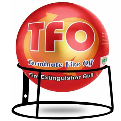Simply throw or roll the ball into the fire, or mount it with the supplied bracket in a fire prone area, such as the kitchen stove. Once the Terminate Fire Safety Solution comes in contact with a naked flame it will self-activate automatically without any manual assistance, extinguishing the fire. After the fire is extinguished, the residue can be easily vacuumed.